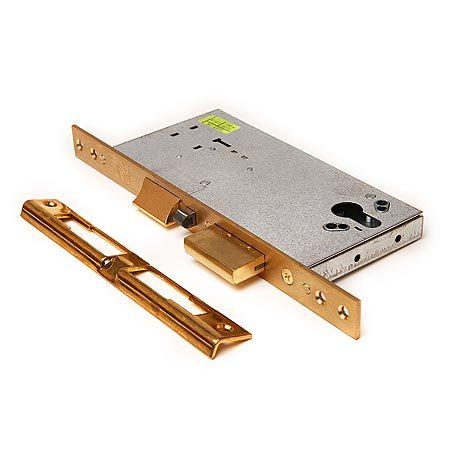 Врезной, универсальный, электроуправляемые ригель и защелка, расстояние от центра цилиндра до лицевой планки 40 мм, матовая латунь, в комплекте ответная планка, крепеж; габаритные размеры врезной части 183х69х18 мм, лицевая планка 264х22х3 мм