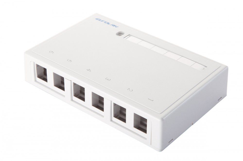 Коробка настенная, 6-портовая Keystone, цвет белый.