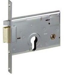 Для алюминиевых дверей. Оцинкованные корпус и лицевая пластина. Напряжение 12 В переменного тока , не реверсивный, фиксация защелки в открытом состоянии, расстояние от торца двери до середины цилиндра 60 мм.