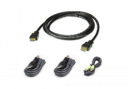 Комплект шнуров, мон+клав+мышь USB+аудио, HDMI+2xUSB A-Тип/B-тип+MINIJACK, Male, опрессованный, 1.8 м, черный.