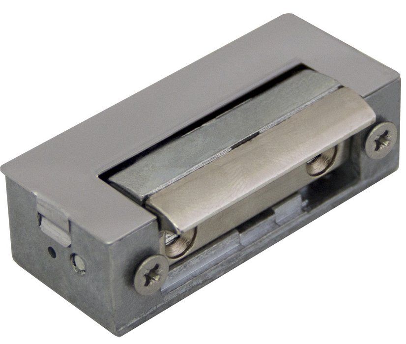 Электрозащелка, нормально-закрытая, стандартная, симметричная, регулировка язычка, усиленная катушка питания, DC 12 В, 0,25 А, механическая прочность 230 кг, для дверей весом до 60 кг, -15...+40 °C, без планки.