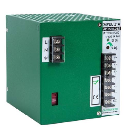 Промышленный источник питания на DIN-рейку, Выход 500 Вт / DC 24 В / 21 A, -20…+70°C; 110x121x100 мм.
