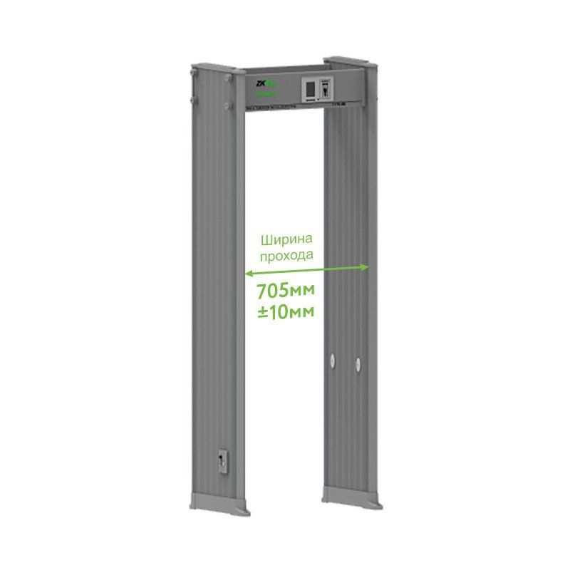 Арочный металлодетектор, 18 зон детектирования, ширина прохода 705 мм, 100 уровней чувст-ти, детекция драгоценных металлов, 3.5 ЖК дисплей, подсчет количества людей и срабатываний тревоги, магнитные, немагнитные металлы, материал огнестойкий и влагостойкий ПВХ, влагозащищенный IP65, -20°C - 55°C, 2229х816х554 мм.