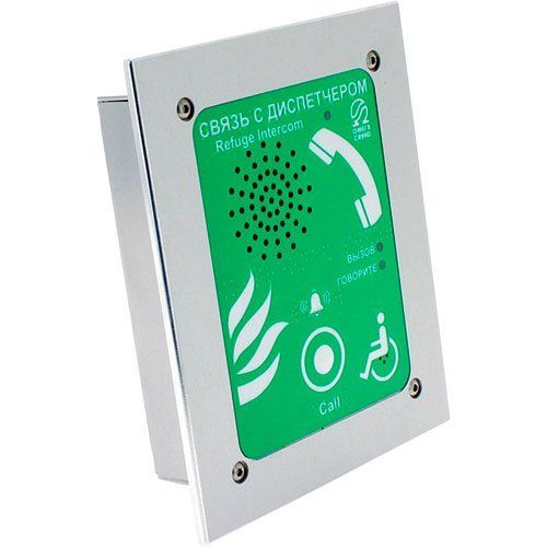 • обеспечивает двустороннюю речевую связь безопасных зон с дежурным персоналом (диспетчером) и организацию связи для людей с ограниченными физическими возможностями (МГН) согласно Своду Правил СП 59.13330.2016.