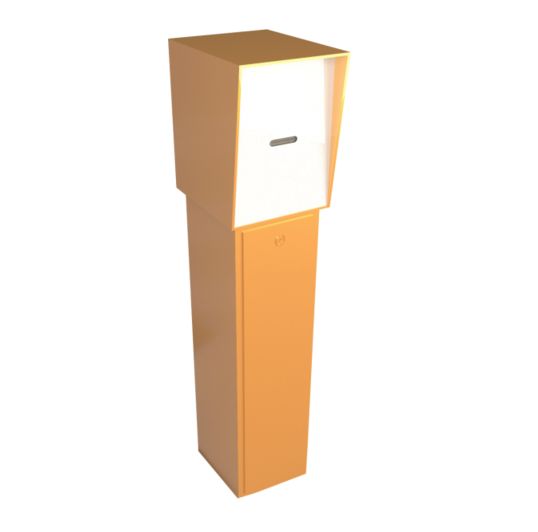 Картоприёмник со считывателем формата EM-Marine, Wiegand, емкость съемного контейнера -1000 карт, световая индикация, обогрев, 12 B DC, -35...+45°С, 295х250х1260 мм, 24,5 кг. Окрашенная сталь. Цвет- оранжевый.