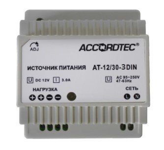 Источник питания стабилизированный с креплением на DIN рейку; U-вх. ̴100-240В, 50 Гц; U-вых.пост. 12…18 В (регул.), I-вых.пост. 3 A; Р-вых. 54 Вт; t-раб. -10…+50°C, габ.размеры 96х78х56 мм.