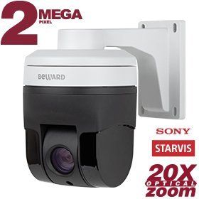 Видеокамера IP 2 Мп купольная поворотная; 1/2.8" КМОП SONY Starvis; 1920х1080 - 25 к/с; H.265/H.264/MJPEG; zoom 5.5-110 мм с АРД, 20X; ИК-подсветка 60 м, 0.001 лк; WDR 120 дБ, 2D/3DNR; MicroSD 256 Гб; ONVIF Profile S/G/T/Q; детекция движения, сетевая ошибка; тревожный вход/выход - 1/1; аудио вход/выход - 1/1; 24 АC; 48 Вт; IP66; -40...+50°C; 178х184 мм.