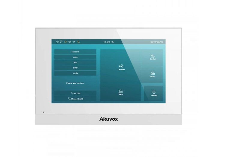 IP монитор, настенный, Android 6.0, сенсорный экран 7" (TN, 1024x600), 12В/РоЕ, динамик х 2, РоЕ, колодка релейных вх./выходов, белый, -10...+45°C, 200x132x27мм.