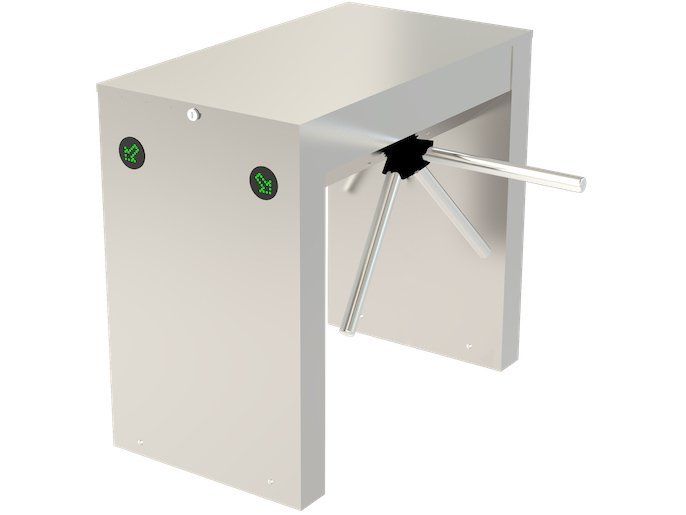 Турникет тумбовый моторизованный TWISTER 700 двухпроходный. Корпус и планки из нержавеющей стали. Светодиодные указатели проход. Стержни-барьеры с электродоводкой, автоматической системой антипаники и автоматическим поднятием штанг. Встроенный блок питания. IP54.