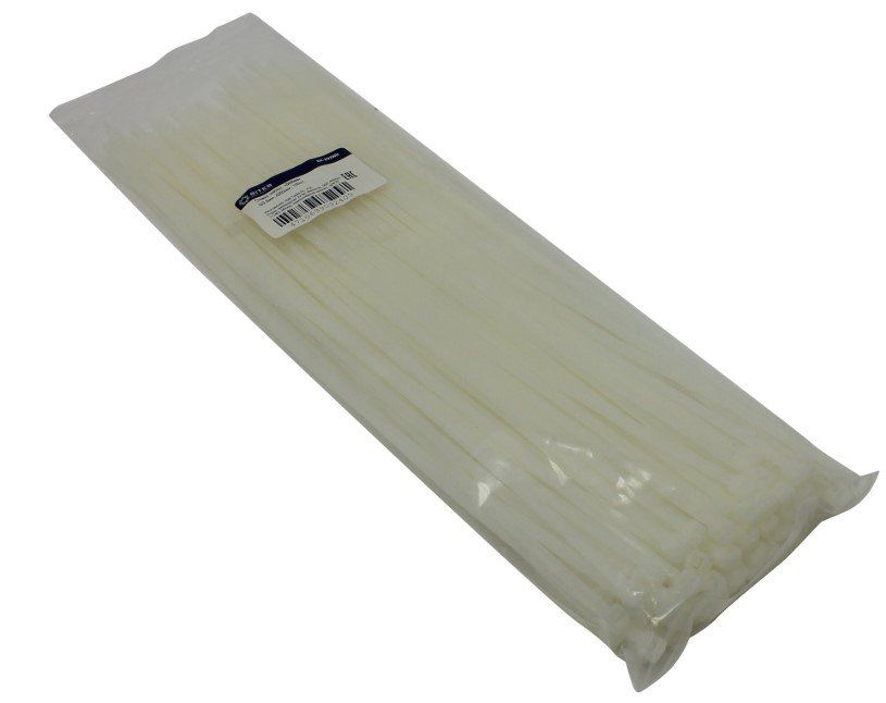 Стяжка нейлон длина 300мм., ширина 3.6мм., 100шт, белая.