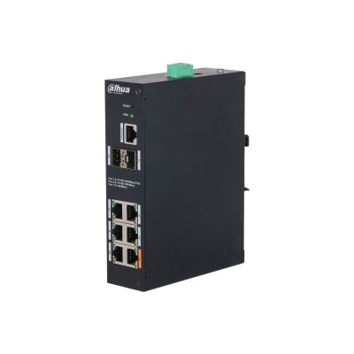 Коммутатор сетевой 8 портовый гигабитный управляемый L2 с PoE промышленный; 4xRJ45 PoE 10/100/1000 Мбит/с, IEEE 802.3af/at/bt, 1 порт до 90 Вт, порты 2-4 до 30Вт; 2xRJ45 10/100/1000 Мбит/с Uplink, 2xSFP Uplink 1000 Мбит/с; PoE бюджет до 90 Вт; VLAN, поддержка PоE Watchdog и Extended PoE до 250 м; DC 53 В, БП в комплект НЕ входит; монтаж на DIN-рейку, грозозащита 4кВ; -30... +65°C; 162х123х42 мм.