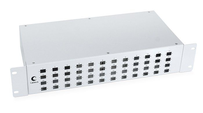 Кросс бокс оптический 19" на 48 SC (LC duplex) со сплайс пластиной и КДЗС (без пигтейлов и проходных адаптеров)
