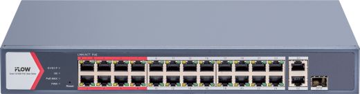 Коммутатор сетевой 27 портовый с РоЕ гигабитный; 24xRJ45 PoE 10/100 Мбит/с, IEEE 802.3af/at, 1xRJ45 Uplink 10/100/1000 Мбит/с, 1xCombo SFP/RJ45 Uplink 10/100/1000 Мбит/с; PoE бюджет до 230 Вт; вариант работы РоЕ А+В 1/2 (-), 3/6 (+), 4/5 (+), 7/8 (-); PoE Watchdog, управление через веб-интерфейс, дальность передачи до 300 метров; защита от перенапряжения до 6 кВ; крепления в стойку в комплекте; AC 100-240 В, 250Вт; 0... +45°C; 335х226х44 мм.