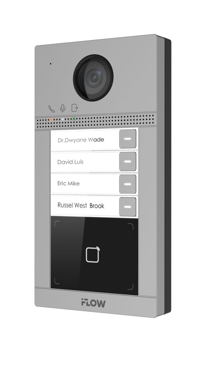 IP вызывная панель на четырех абонентов; ИК-подсветка до 3м; 2 Мп; Wi-Fi 2.4 ГГц. Web интерфейс; PoE/12В DC, Mifare считыватель (до 2000 пользователей, 10000 карт); WDR; 10M/100M Ethernet; работа с приложением GuardingVision; 2 реле для замка(не более 2 А); IP65; -40…+53℃; IK08; корпус: металл/пластик; врезной монтаж; 174х91х29 мм; 350 г. Аналог VDP-D4214W(B)/Flush.