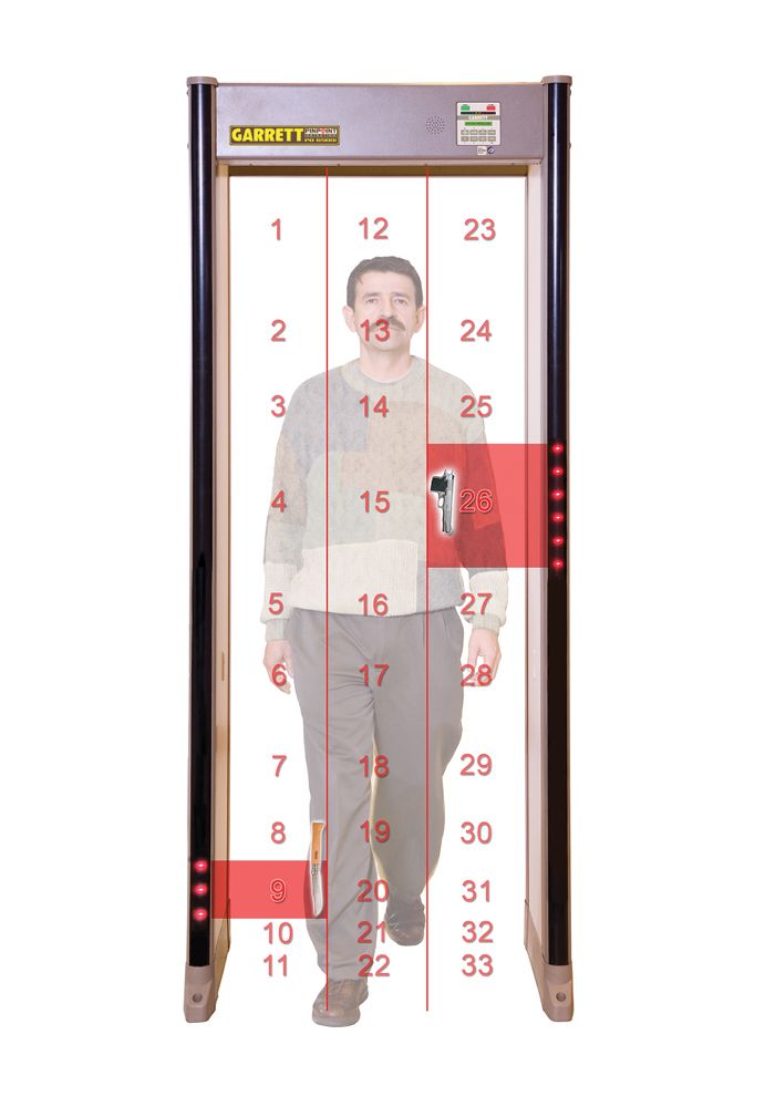 Высокочувствительный металлоискатель GARRETT PD-6500i IP65 имеет аж 33 зоны обнаружения. Он способен выявить все металлические предметы и локализовать их месторасположение с точностью до 10см. При обнаружении металла срабатывает световая и звуковая индикация, а значит, сотрудники службы безопасности гарантировано не пропустят нарушителя.
