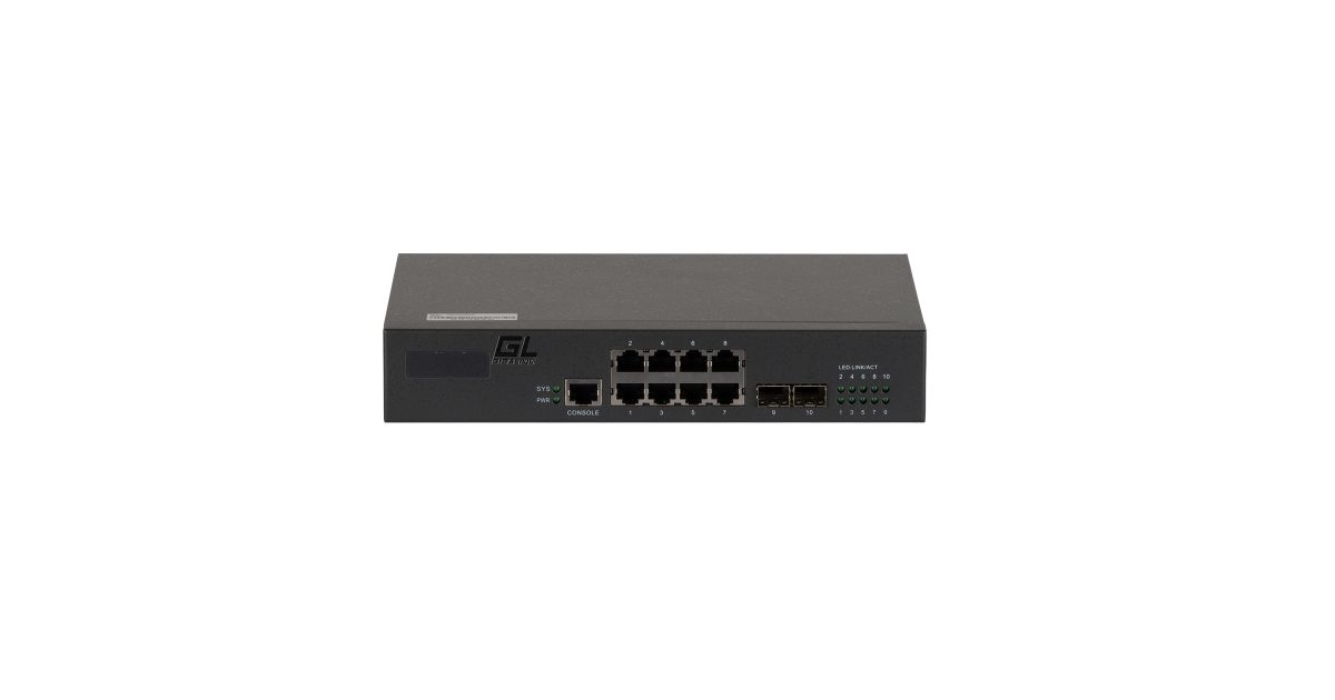 Коммутатор сетевой управляемый L2; 8 портов RJ45 10/100/1000 Мбит/с; 2SFP порта; Console; AС 220B; 0…+40 °С; 370×180×44 мм.