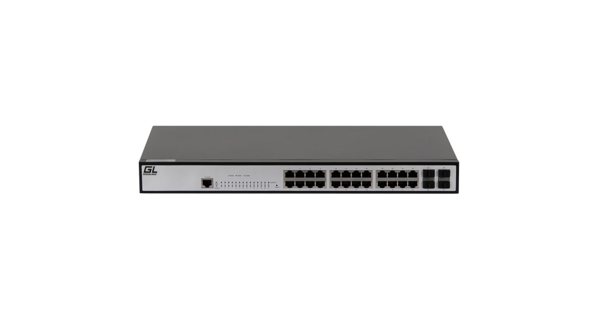 Коммутатор гигабитный управляемый L2 28 портовый, 24хRJ-45 1000 Мбит/с; 4хSFP+ 10 Гбит/с ; установка в стойку 19"; до 4K VLAN-групп, пропускная способность 56 Гбит/с; AС 220В; 24.6 Вт; 0…+50 °С; 440x230x44 мм.