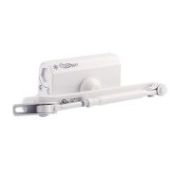 Морозостойкий дверной доводчик со скользящей тягой для дверей весом от 40 до 100 кг, класс доводчика EN2-5, монтажные размеры - 165х19 мм, -45...+60°С, 182х40х62 мм. Цвет-белый.