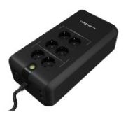 Источник бесперебойного питания Off-Line, модифицированная синусоида; P-нагр.400 ВА/200 Вт; U-вх.170…280 В; 1 АКБ 12 В, 4.5 Ач; Защита от перегрузки и КЗ; RJ-11, RJ-45; 4 бат IEC 320 C13; t-раб.0…+40°C; 231х81х185 мм. В автономном режиме автоматически отключается через 30 мин.