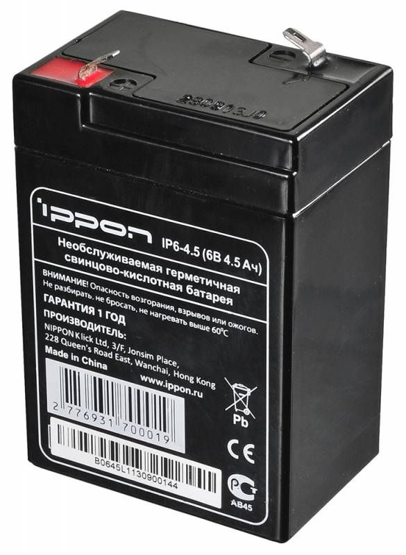 Аккумуляторная батарея 6В; Номинальная емкость (20 часов) 4,5Ач; 70х47х100 мм.