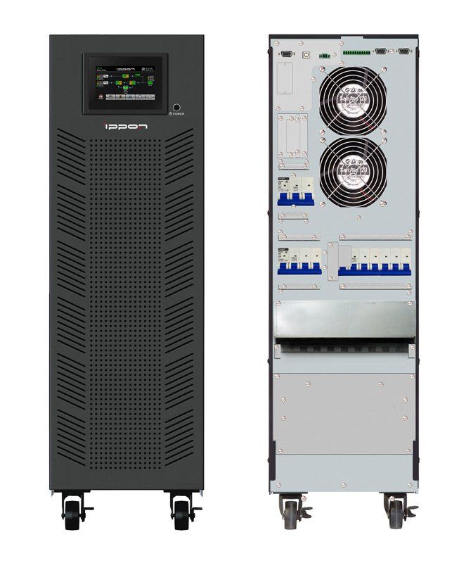 Источник бесперебойного питания On-line 40 000 ВА; АС 380/400/415 В ; Нагрузка 40 000 Вт; Чистая синусоида; 80 АКБ 12 В, 9 А·ч в комплекте; Защита от перегрузки и КЗ; USB; RS232; 0 ...+45°С; 300x815x1000.LCD дисплей. Время автономной работы (полная нагрузка) 1 мин.
