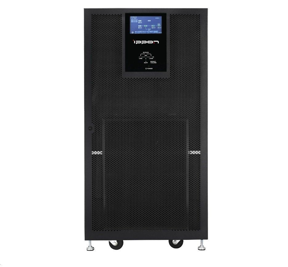 Источник бесперебойного питания трёхфазный online; U-вх. 305...478 В, U-вых 380 В, P-вых.200000 ВА (200000 Вт); количество батарейный блоков 32/36/40; световая и звуковая индикация режимов работы, ЖК-дисплей; RS 232, USB, 2 порта сухих контактов, порт SNMP-модуля; функция удаленного аварийного отключения выходного напряжения (EPO); параллельная работа до 4-х устройств; IP20, t-раб. 0...+40°C, 600х1200х1000 мм