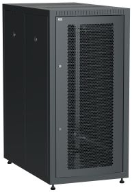 Шкаф телекоммуникационный напольный 19'', 24U, передняя дверь перфорированная, задняя дверь металл, допустимая распределенная нагрузка 700 кг, полезная глубина 900 мм, цвет черный, разобранный, 1200х600х1000 мм.