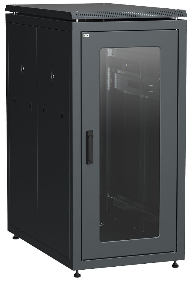 Шкаф телекоммуникационный 19" напольный, дверь стекло, 24U, 1250х600х1000 мм (ВхШхГ), полезная глубина 915 мм, ручка с замком, распределенная нагрузка: 1000 кг, цвет чёрный.