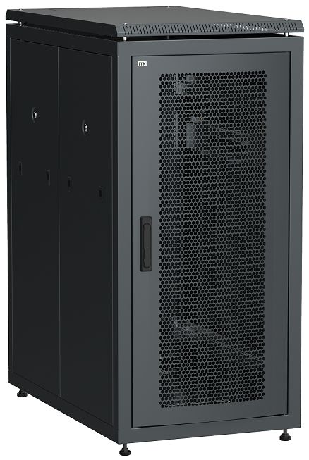 Шкаф телекоммуникационный 19" напольный, дверь перфорированная, задняя дверь перфорированная, 24U, 1250х600х1000 мм (ВхШхГ), полезная глубина 915 мм, ручка с замком, распределенная нагрузка: 1000 кг, цвет чёрный.