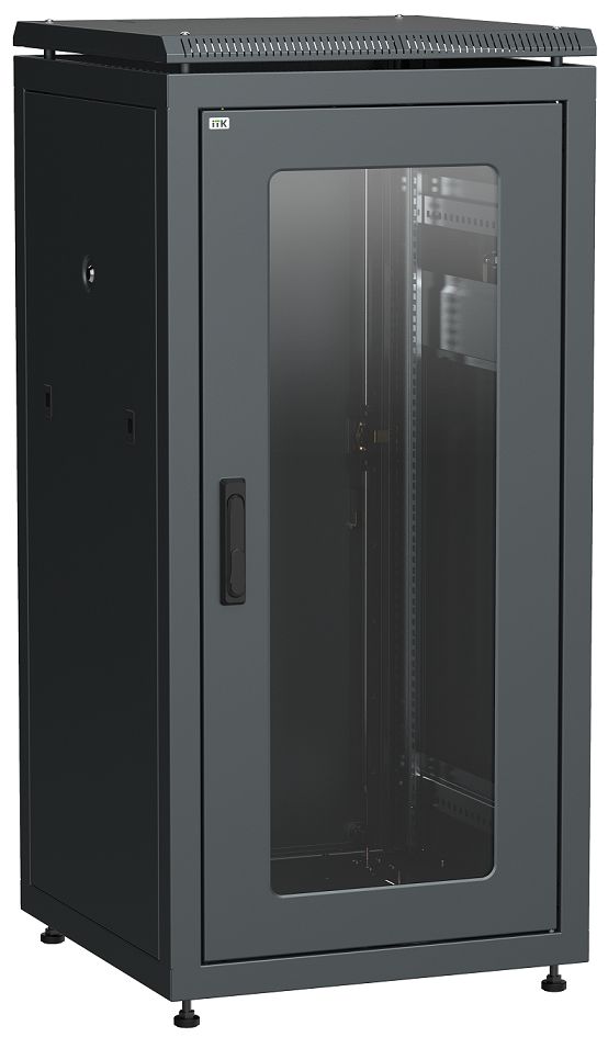 Шкаф телекоммуникационный 19" напольный, дверь стекло , задняя дверь металл, 24U, 1250х600х800 мм (ВхШхГ), полезная глубина 715 мм, ручка с замком, распределенная нагрузка: 1000 кг, цвет чёрный.