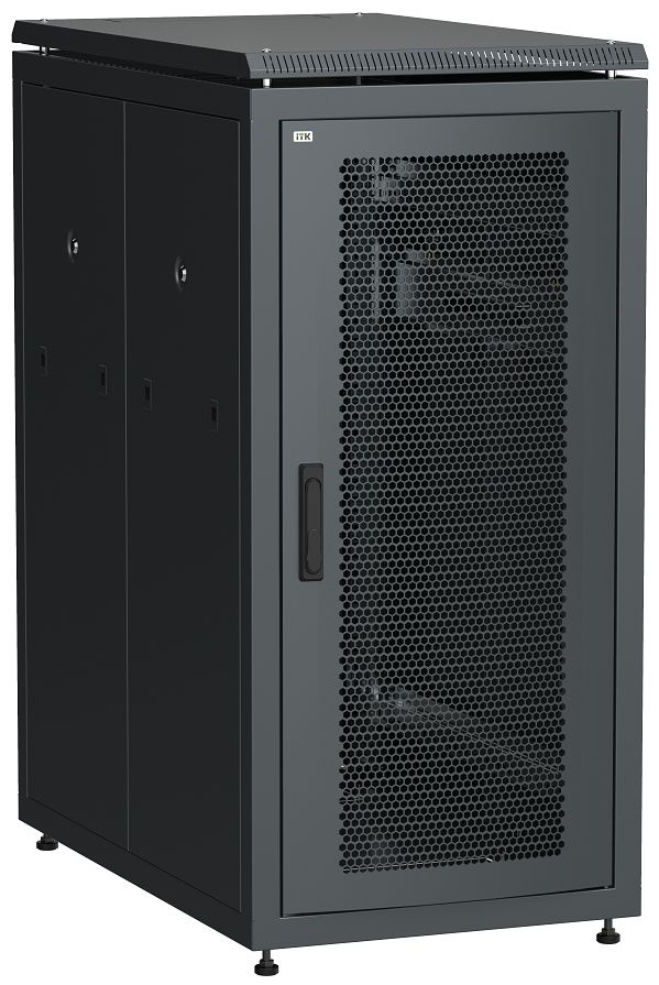 Шкаф телекоммуникационный 19" напольный, передняя дверь перфорированная, задняя дверь перфорированная, 24U, 1200х800х1000 мм (ВхШхГ), полезная глубина 915 мм, ручка с замком, распределенная нагрузка: 1000 кг, цвет чёрный.