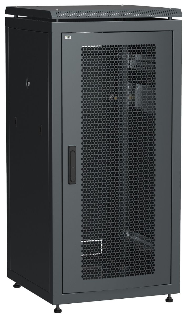 Шкаф телекоммуникационный напольный 19'', 28U, дверь перфорированная, допустимая распределенная нагрузка 1000 кг, полезная глубина 515 мм, цвет черный, разобранный, 1425х600х600 мм.