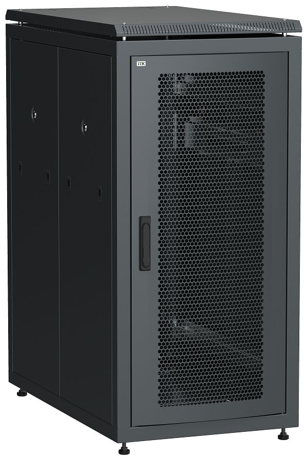 Шкаф телекоммуникационный напольный 19'', 28U, передняя и задняя двери перфорированные, допустимая распределенная нагрузка 1000 кг, полезная глубина 915 мм, цвет черный, разобранный, 1425х800х1000 мм.