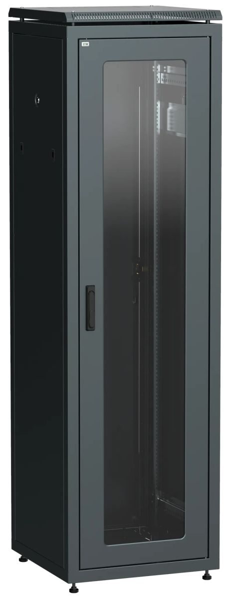 Шкаф телекоммуникационный 19", напольный, 33U, 1650x600х800 мм (ВхШхГ), полезная глубина 715 мм, передняя дверь стекло, задняя дверь металл; ручка с замком; распределенная нагрузка: 1000 кг; цвет черный (RAL 9005).