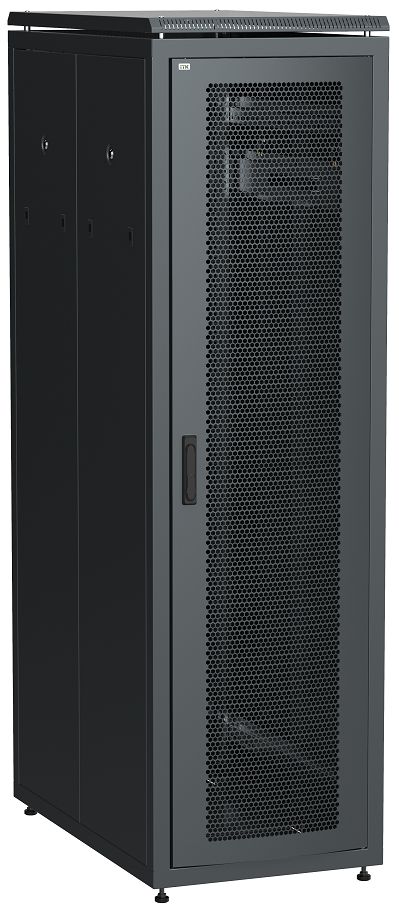 Шкаф телекоммуникационный 19" напольный, дверь перфорированная, 38U, 1870х600х1000 мм (ВхШхГ), полезная глубина 915 мм, ручка с замком, распределенная нагрузка: 1000 кг, цвет чёрный.