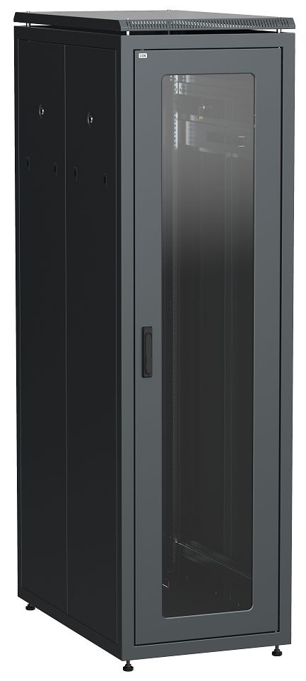 Шкаф телекоммуникационный 19" напольный, дверь стекло, 42U, 2055х600х1000 мм (ВхШхГ), полезная глубина 915 мм, ручка с замком, распределенная нагрузка: 1000 кг, цвет чёрный.