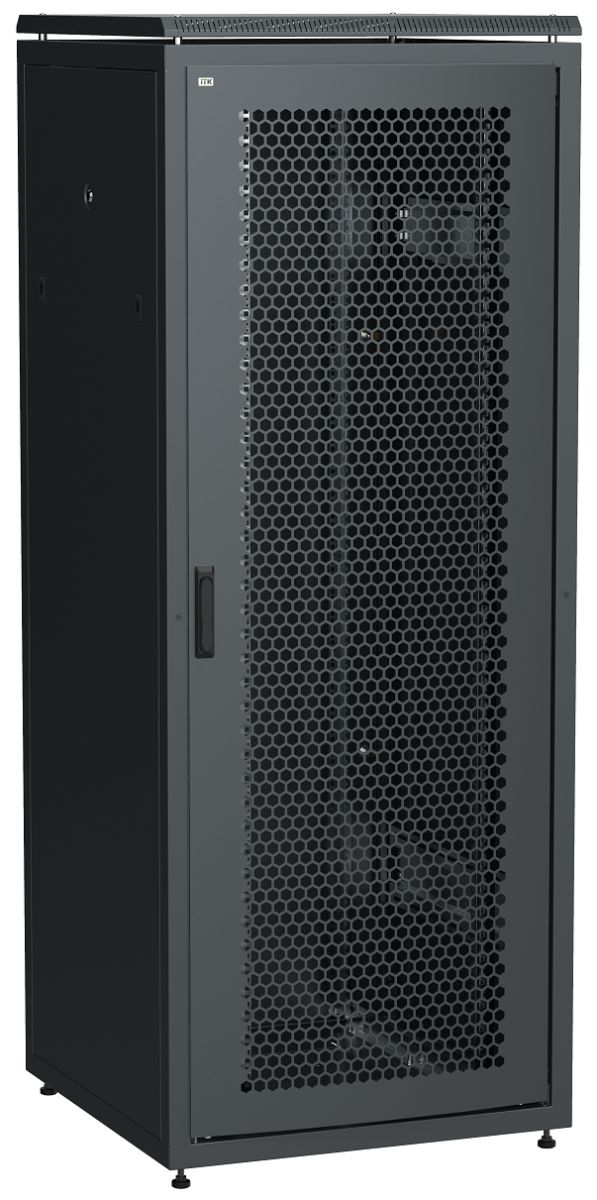 Шкаф телекоммуникационный 19" напольный, передняя дверь перфорированная, задняя дверь металл, 42U, 2055х800х800 мм (ВхШхГ), полезная глубина 715 мм, ручка с замком, распределенная нагрузка: 1000 кг, цвет чёрный.