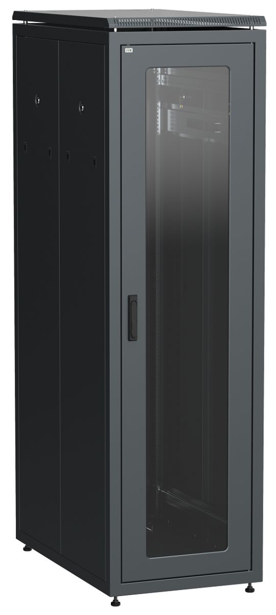 Шкаф телекоммуникационный 19" напольный, дверь стекло, 47U, 2270х600х1000 мм (ВхШхГ), полезная глубина 915 мм, ручка с замком, распределенная нагрузка: 1000 кг, цвет чёрный.