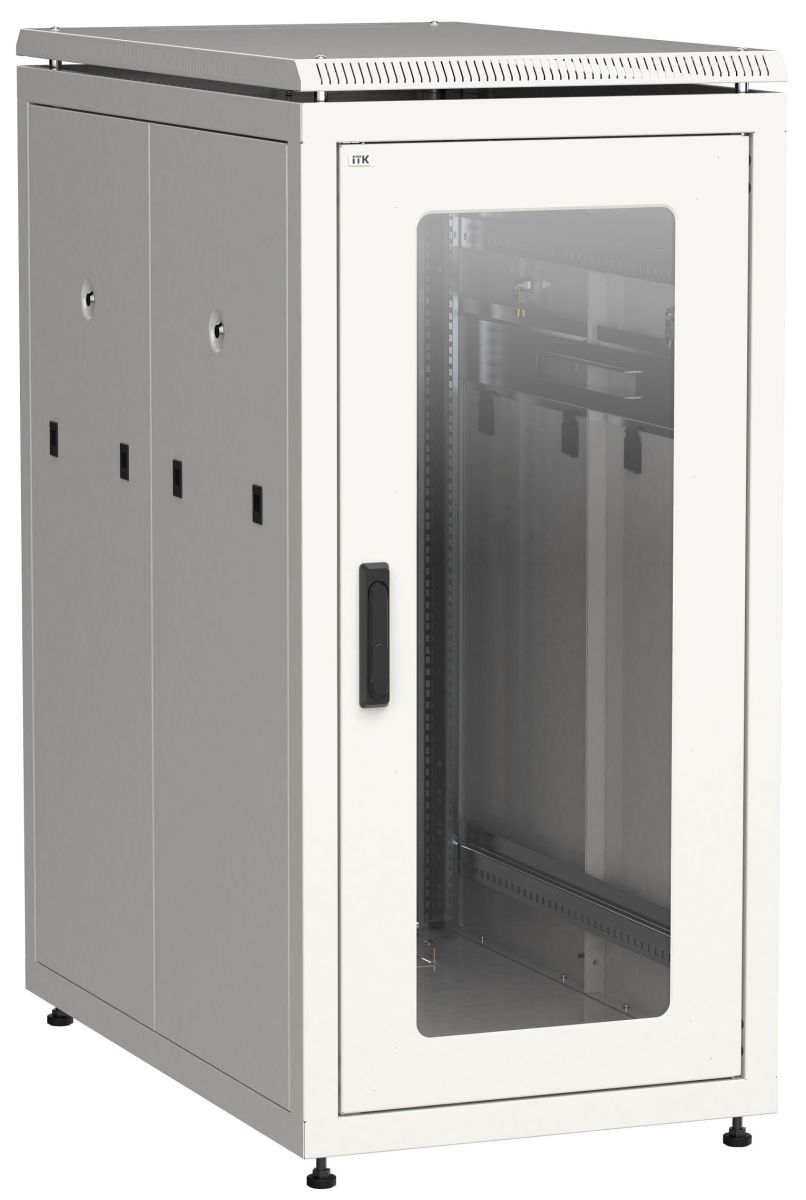 Шкаф телекоммуникационный 19", напольный, 24U, 1250x600х1000 мм (ВхШхГ), полезная глубина 915 мм, передняя дверь стеклянная, задняя дверь глухая перфорированная; ручка с замком; распределенная нагрузка: 1000 кг; цвет серый (RAL 7035).