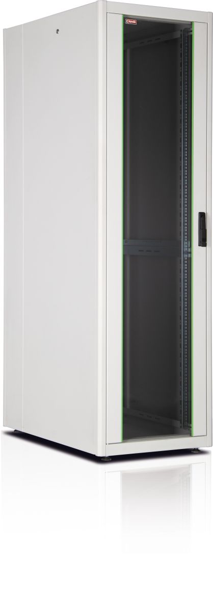 Шкаф напольный 19", 32U, допустимая статическая нагрузка 600 кг, 1560x600х1000 мм. Передняя дверь стеклянная с поворотной ручной и замком. Цвет серый.