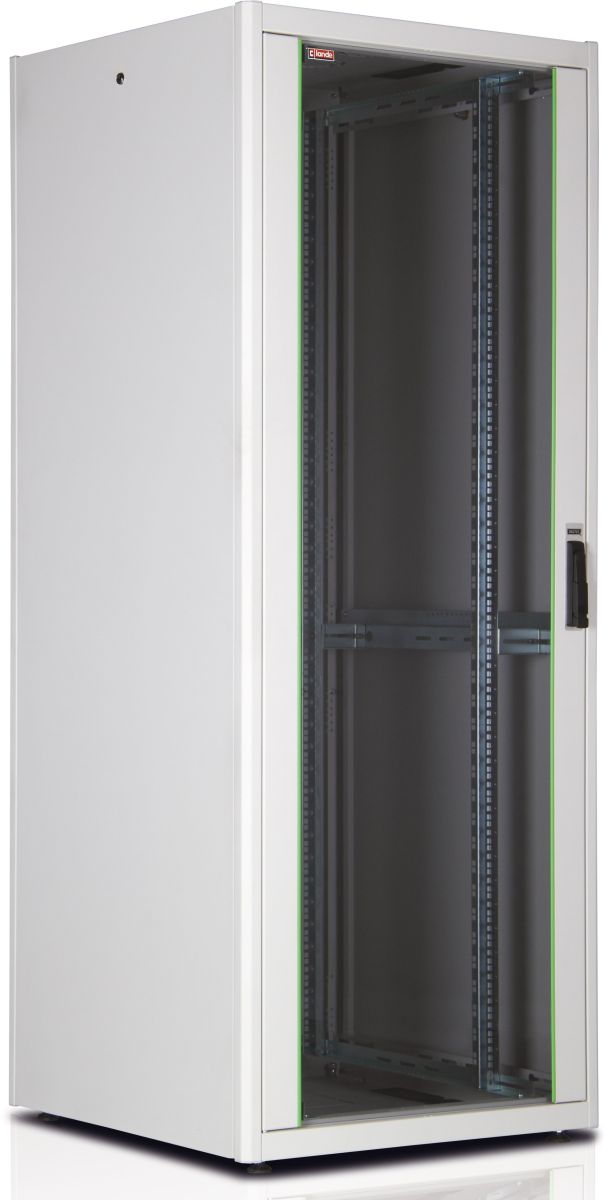 Шкаф напольный 19", 42U, допустимая статическая нагрузка 600 кг, 2010x800х800 мм. Передняя дверь стекло с поворотной ручной и замком. Цвет серый.