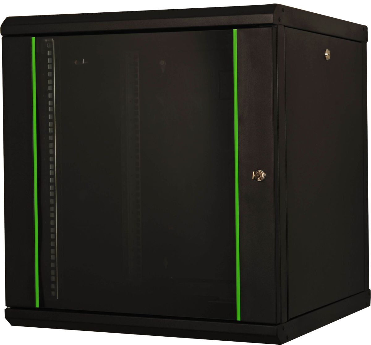 Шкаф настенный 19"; 9U; дверь стекло;505x600x450 мм, максимальная нагрузка 80 кг. Цвет черный.