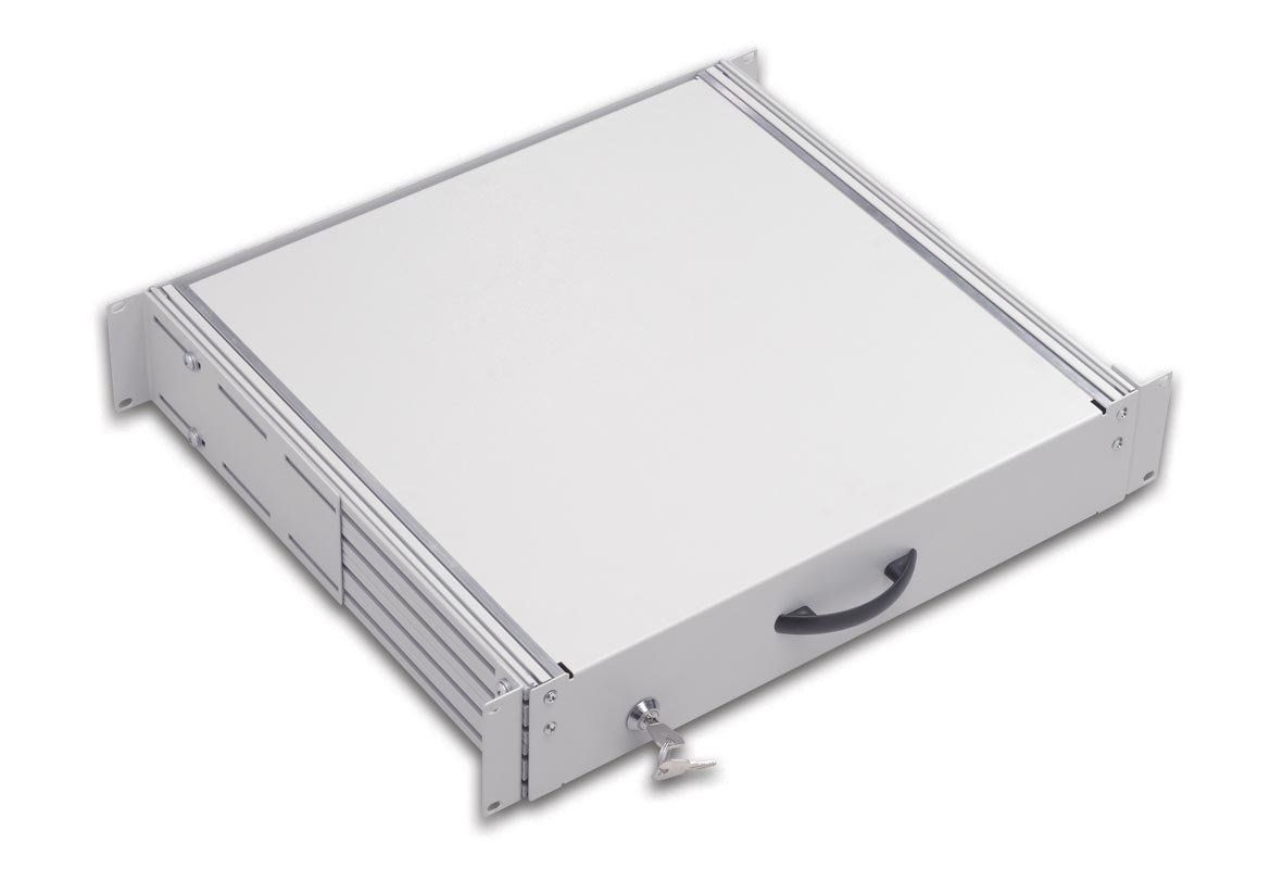 Ящик выдвижной с ключом, 2U 19'', 88х482x405, цвет серый.