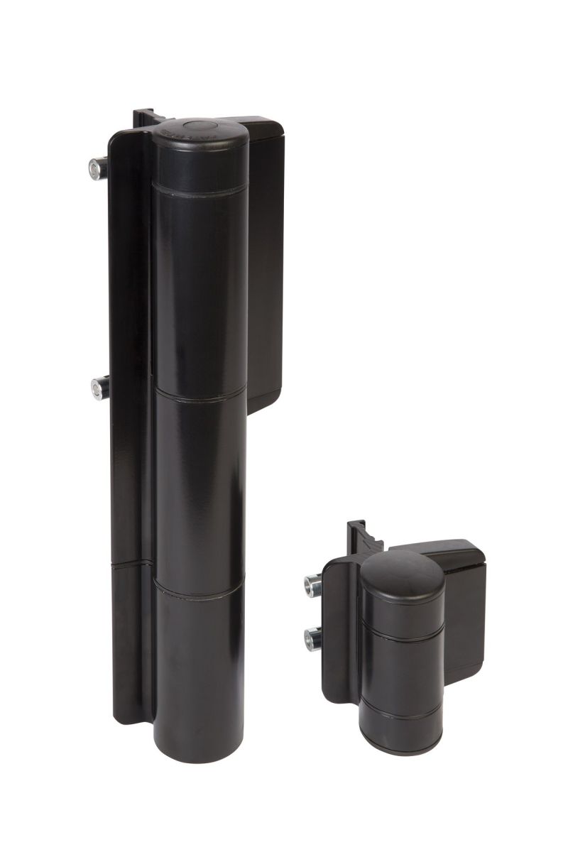 Петля-доводчик с гидравлическим демпфером, для створок весом до 150 кг и шириной до 1,5 м, угол открытия до 180°, слабое сопротивление при открытии 16 Нм, регулируемые скорость и сила закрытия, влаго- и морозостойкая, скорость закрытия нечувствительна к перепадам температур, нижний шарнир DINO, крепление с помощью Quick-Fix, цвет-черный