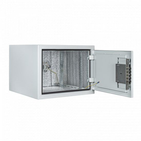 Шкаф телекоммуникационный настенный 19" 9U, уличный; IP66, t-раб.-55…+50°С, 600х450х600 мм (ШхВхГ). Цвет серый. Комплектация: антивандальный замок (сувальдный тип) 1 шт, ключи 2 шт, направляющие, розетка 1 шт, автоматический выключатель 1 шт, термореле 1 шт, реле предстарта 1 шт, нагреватель мощностью в 150 Вт 1 шт, утеплитель из Порилекса НПЭ.