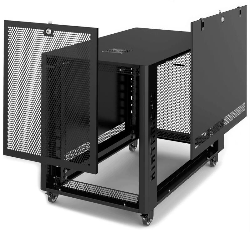 Шкаф серверный телекоммуникационный напольный 19" 12U; передняя дверь перфорированная, задняя дверь перфорированная, ручка с замком; 600x1000x655mm(ШхГхВ), цвет черный (RAL 9004)