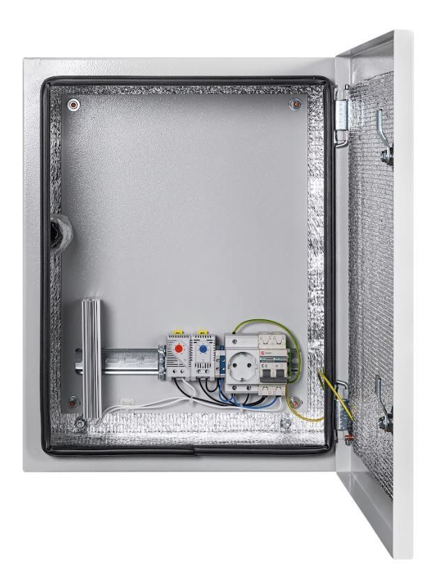 Климатический навесной шкаф предназначен для установки как внутри, так и снаружи помещений, размещения и установки в нём электрооборудования, питающегося от сетей 230В AC ±10% 50 Гц, защиты от неблагоприятных условий окружающей среды (класс защиты IP66) и поддержания заданного температурного режима при эксплуатации этого оборудования.