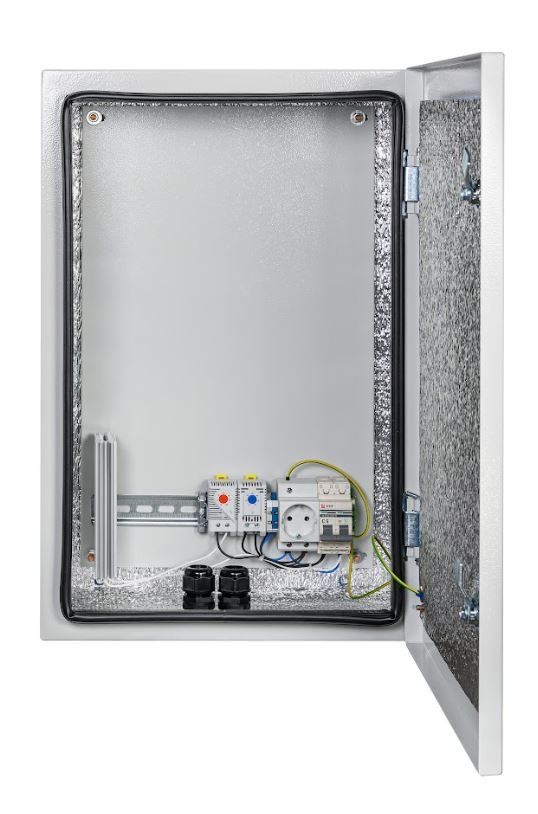 Климатический навесной шкаф предназначен для установки как внутри, так и снаружи помещений, размещения и установки в нём электрооборудования, питающегося от сетей 230В AC ±10% 50 Гц, защиты от неблагоприятных условий окружающей среды (класс защиты IP66) и поддержания заданного температурного режима при эксплуатации этого оборудования.