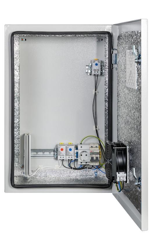 Климатический навесной шкаф предназначен для установки как внутри, так и снаружи помещений, размещения и установки в нём электрооборудования, питающегося от сетей 230В AC ±10% 50 Гц, защиты от неблагоприятных условий окружающей среды (класс защиты IP66) и поддержания заданного температурного режима при эксплуатации этого оборудования.