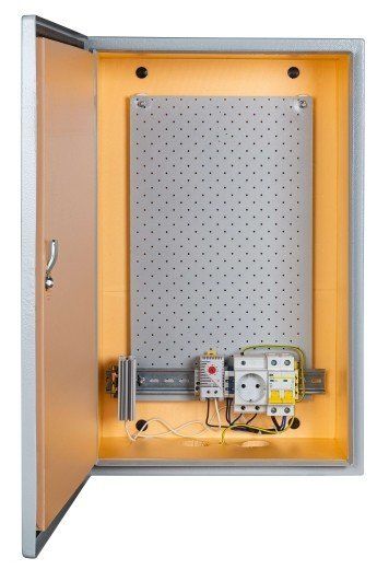 Климатический навесной шкаф. Комплектация: утеплитель из пенополистирола, замок 1 шт.,ключ 1 шт., монтажная плата 1шт., гермовводы 2 шт., розетка 1 шт., автомат.выключатель 1 шт., термореле 1 шт., нагреватель Р=50 Вт 1 шт; IP66, t-раб. -55...+50°С; внутр.размер (ШхВхГ) 320х520х130 мм, габариты внешние(ШхВхГ) 360х560х196 мм; вес 7 кг, цвет ral 7035 (серый)